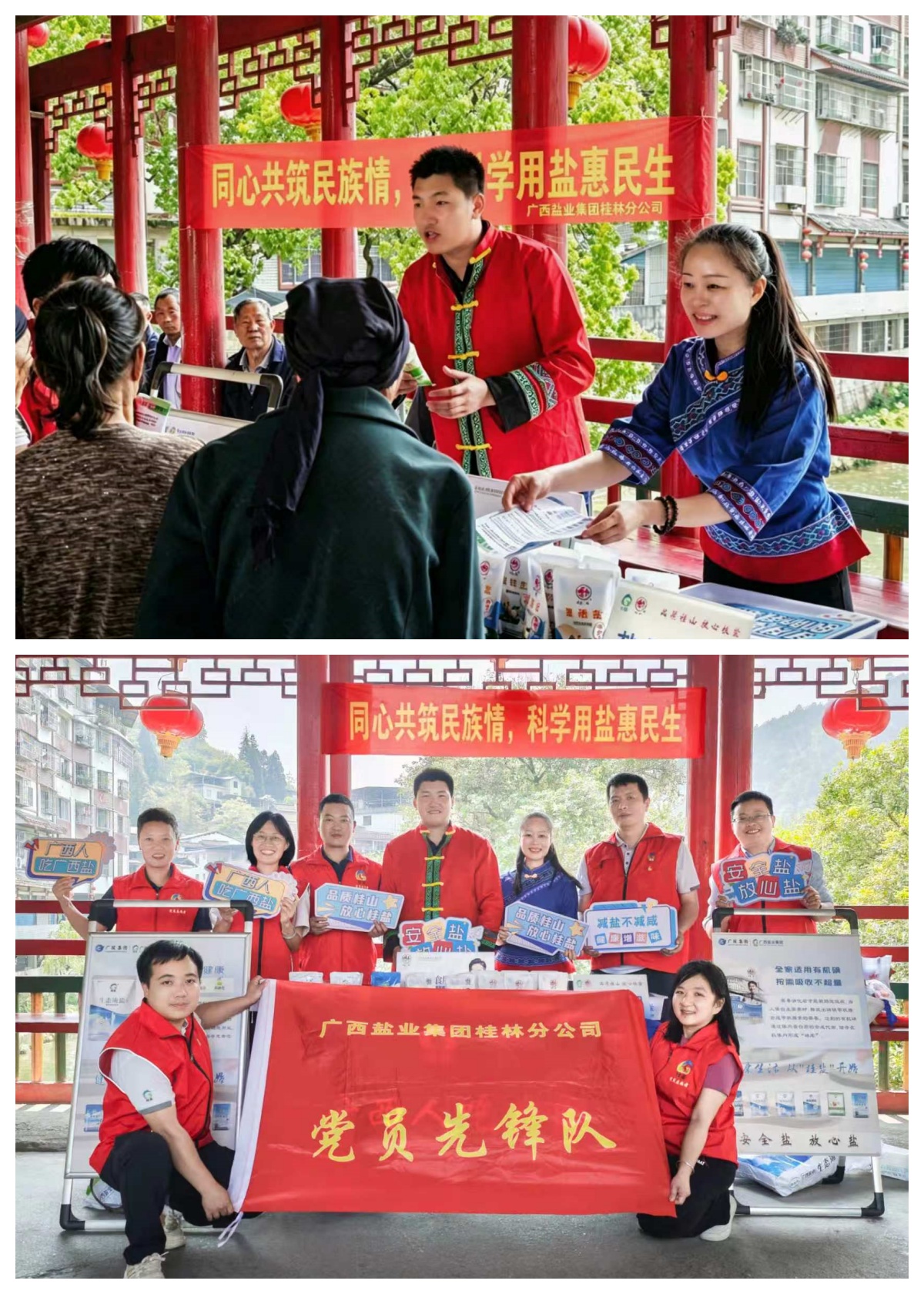 柳州公司开展“八桂同庆三月三 桂盐护航守安康”宣传活动。党员志愿者与少数民族职工代表身着民族服饰,宣讲民族团结政策,普及健康用盐知识。现场展示低钠盐、深井钙盐、富硒盐等产品,开展有奖问答、限盐勺赠送等互动。各族群众在共学知识、共话团结中增进情谊,切实铸牢中华民族共同体意识。