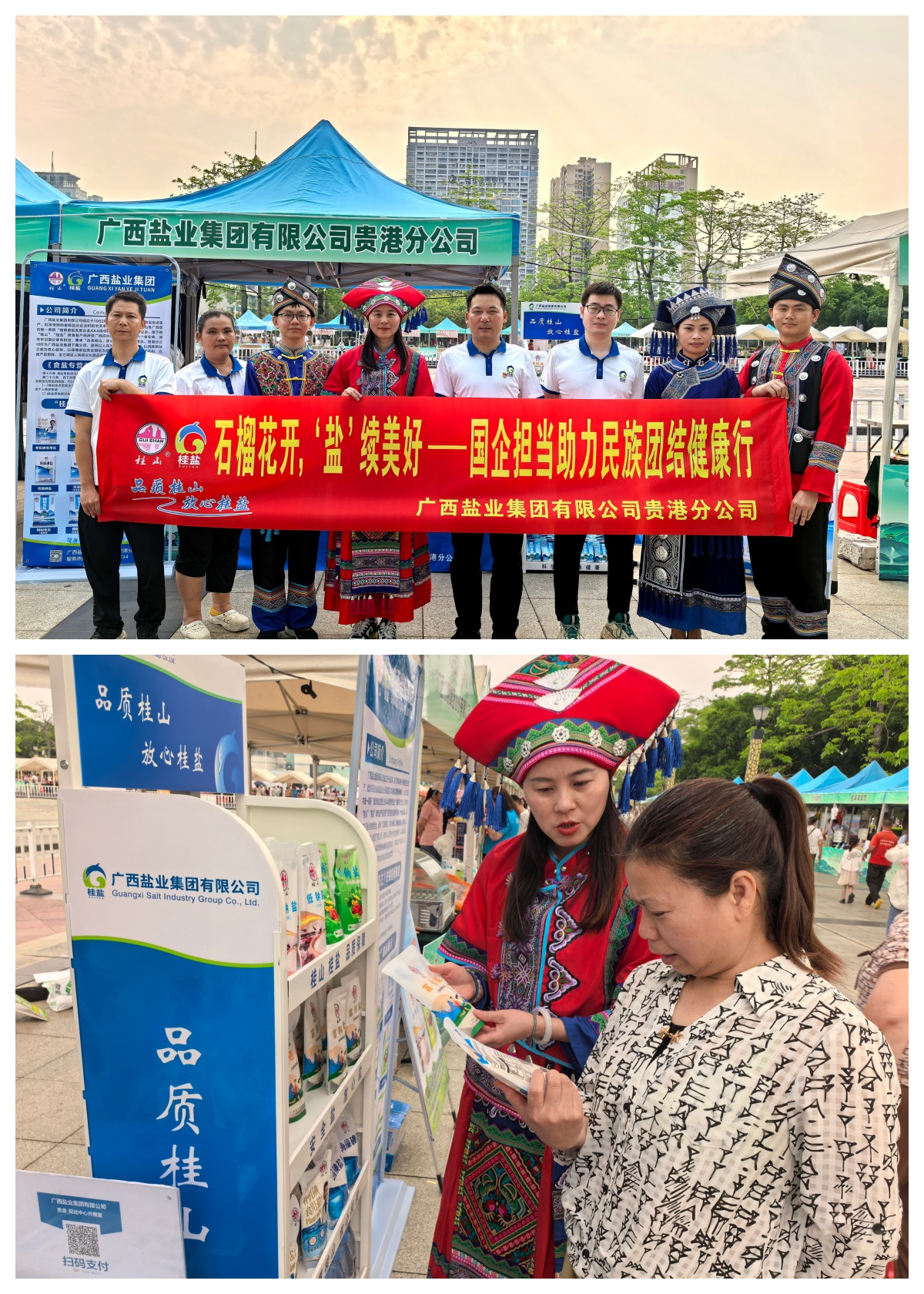 贵港分公司依托“桂字号”农产品大集平台,开展“石榴花开‘“盐”续美好’民族团结健康行活动。党员先锋队搭建食盐科普展台,发放宣传资料与科普手册,接待众多咨询群众。通过健康科普、品牌推广与民族文化相结合,以“小盐粒守护大健康”的实际行动,拉近各族群众距离,增进民族团结情谊,实现“民族团结一家亲”美好愿景。