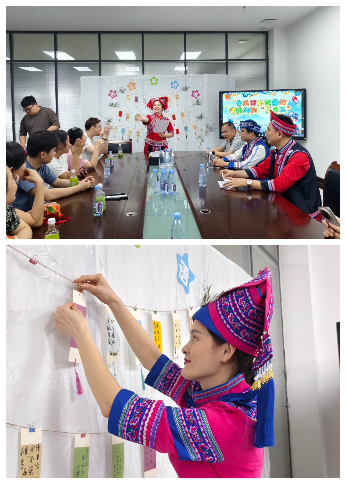 包材公司开展“党建领航促团结 清风润韵三月三”主题活动,将廉政教育、家风建设与民俗体验融合。设置画彩蛋、趣味斗蛋、民俗闯关等沉浸式互动,各族职工互帮互助、自由创作,在手工制作中增进情谊;同心百家宴上,大家围坐共享五色糯米饭、特色民俗小吃,党员带头分享民族文化故事,带动全员交流互动,在欢乐氛围中凝聚团结合力,展现出同心奋进、团结友爱的良好风貌。